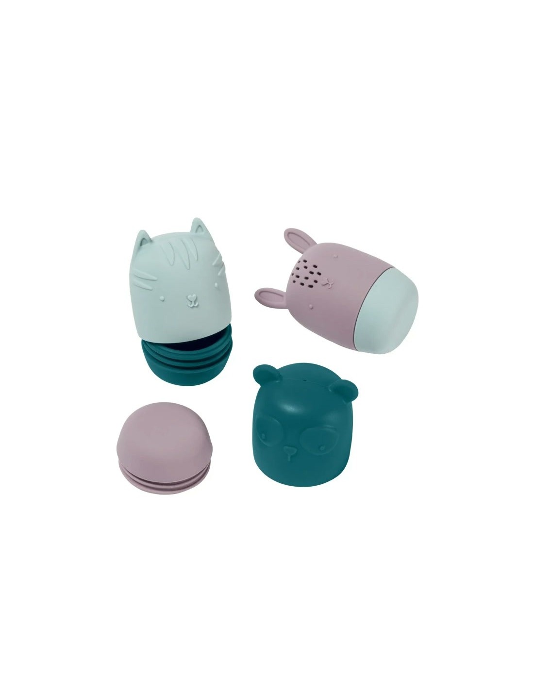Coniglio, gatto e panda sono svitabili e intercambiabili: mescolarli è davvero divertente! Questi giocattoli da bagno si dividono facilmente in due parti per evitare la formazione di muffa.»
