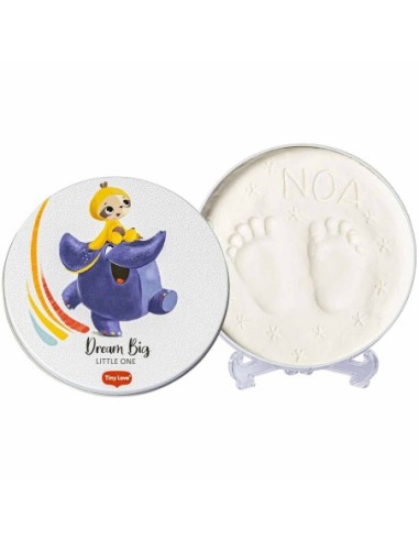 Questo set completo permette di creare impronte di mani o piedi e di conservarle in un'elegante scatola di latta.