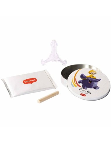 Contenuto: 1x scatola di latta, 1x sacchetto di argilla, 1x mattarello, 1x piccolo supporto e istruzioni chiare.