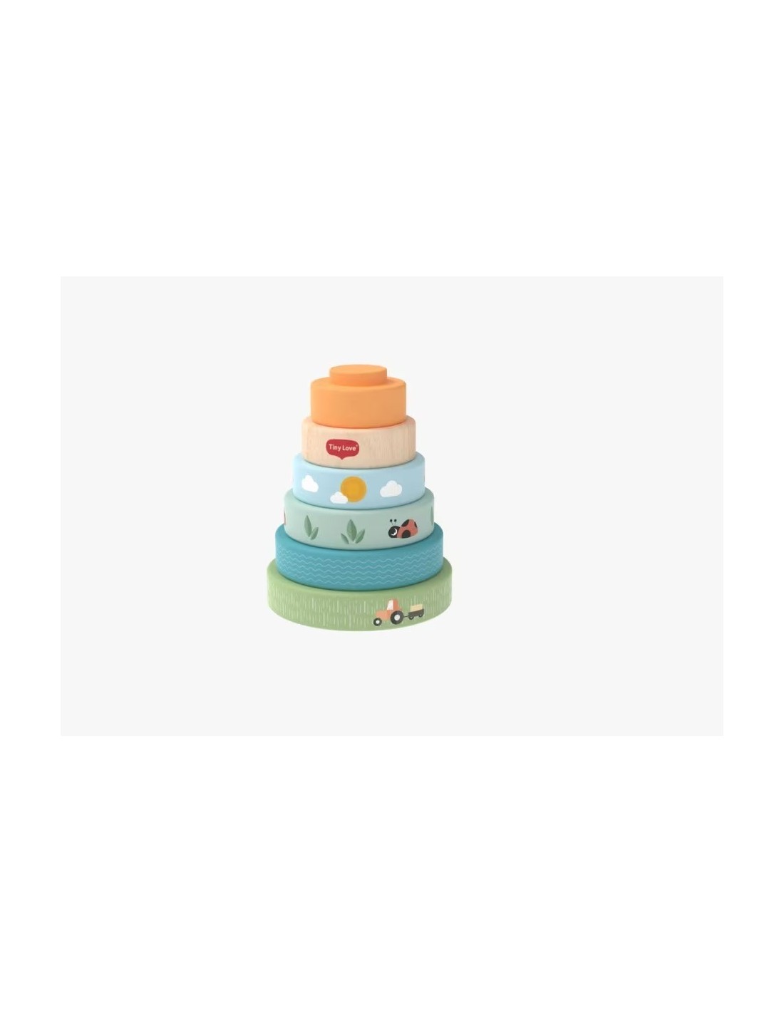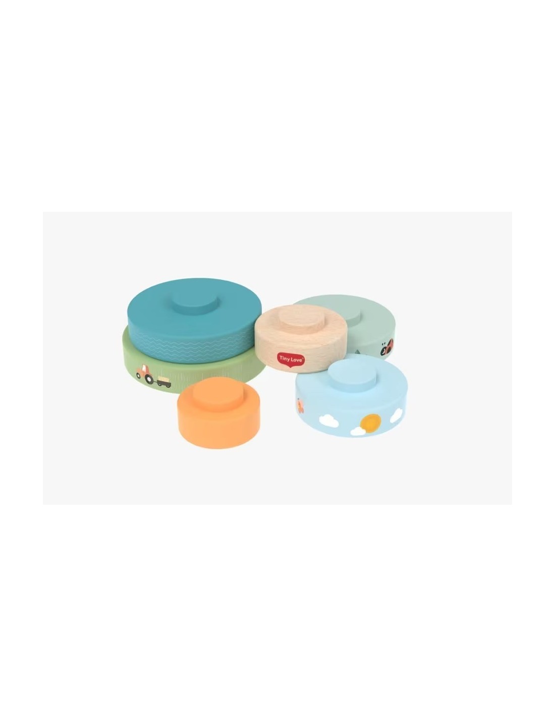 Aiuta il tuo bambino a impilare i dischi in autonomia. Osserva le simpatiche illustrazioni dipinte su di essi e parla di ciò che vedi. Questo è un ottimo modo per favorire lo sviluppo del linguaggio.