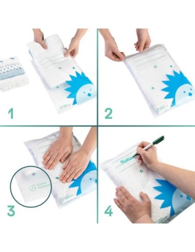 Trasparenti per poter vedere a colpo d’occhio che cosa contengono, ogni bustina cambio neonato ha un design unico: un simpatico personaggio Koala e una frase motivazionale speciale per te!