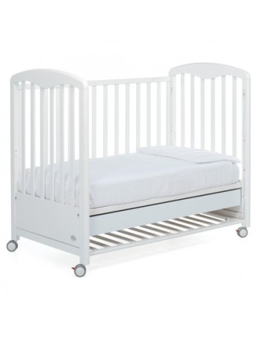 Il lettino ha un ampio cassetto inferiore, suddiviso in due scomparti, e ruote gommate antigraffio, con sistema frenante, per facilitare gli spostamenti.