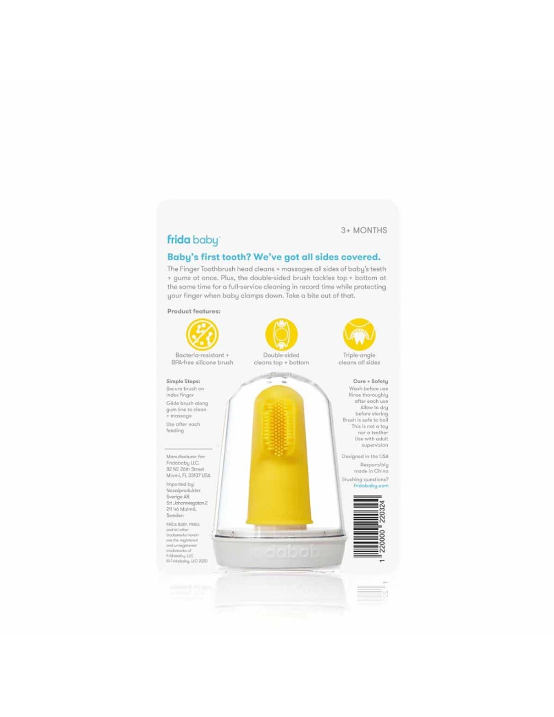 Prendersi cura della salute orale dei tuoi bambini fin da piccoli è una buona idea. Lo spazzolino Frida Baby pulisce e massaggia contemporaneamente tutti i lati dei dentini e delle gengive. La testina doppia pulisce la parte superiore e inferiore allo stesso tempo garantendo una pulizia completa in tempi record, proteggendo il tuo dito da eventuali morsi accidentali del bambino.