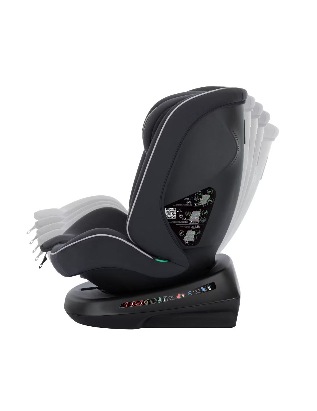 - Con 1 posizione di reclinazione in senso contrario di marcia e 5 in senso di marcia, potrai sempre trovare la posizione più comoda per il tuo bambino.