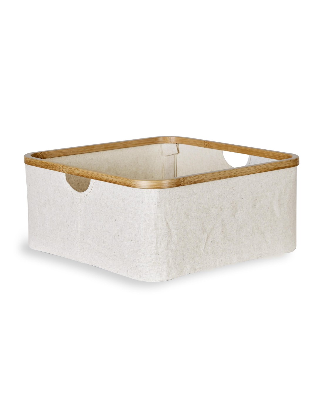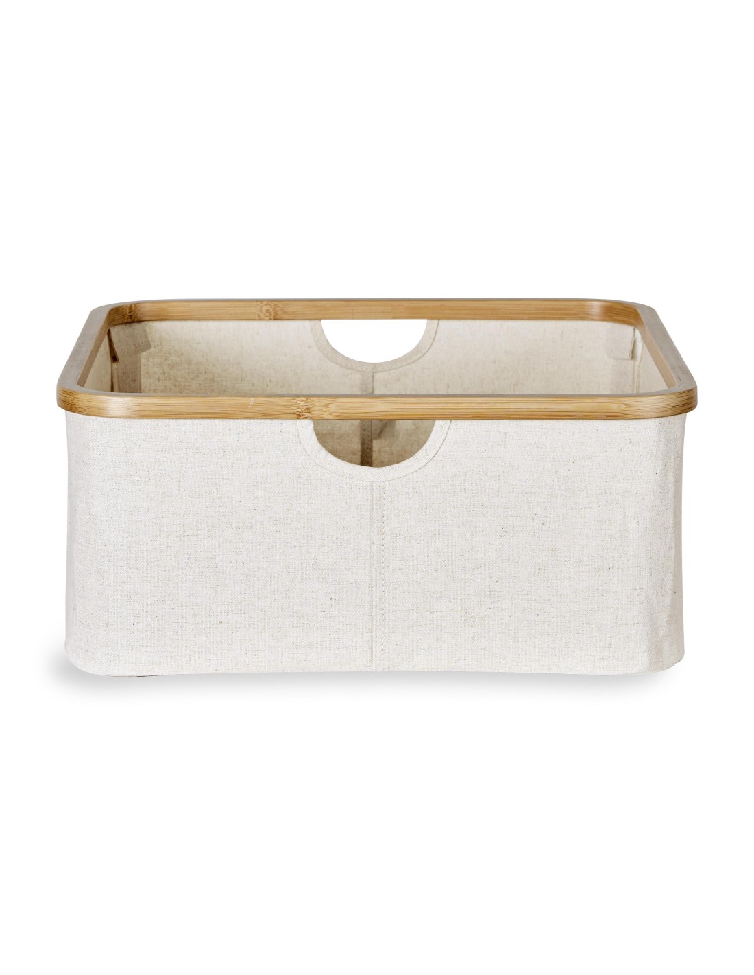 Questo cestino portaoggetti è stato realizzato in armonia con l'estetica calda e sobria della collezione e offre una soluzione elegante per tenere in ordine i piccoli oggetti.