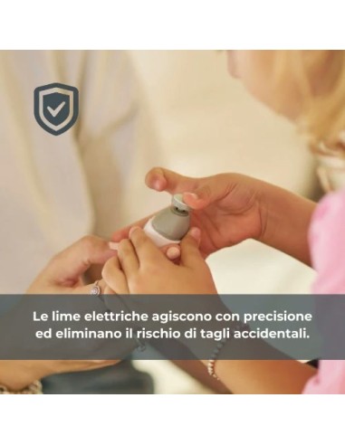 Grazie alla funzione di spegnimento di sicurezza, infatti, non appena la lima entra in contatto con la pelle smette di funzionare, proteggendo così le manine delicate dei bambini e riducendo al contempo lo stress e l'ansia dei genitori.