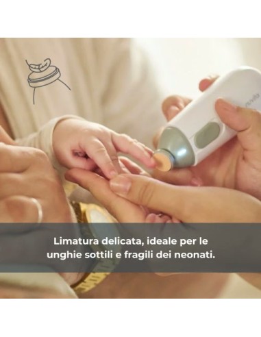La sua azione di limatura delicata, infatti, preserva l'integrità delle unghie e della pelle circostante, prevenendo irritazioni e garantendo il massimo comfort al bambino.