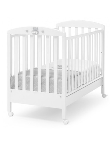 Lettino con struttura in legno massello di faggio. Ampio cassetto, 4 ruote piroettanti con gomma antitraccia di cui due con freno. Entrambe le sponde sono mobili con il sistema di movimento secur-baby azionabile in due movimenti susseguenti. Kit alzata rete incluso.