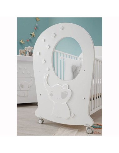 Il lettino Oblò della collezione Elly di Erbesi dispone di un pannello centrale con oblo per permettere di osservare sempre il bambino.