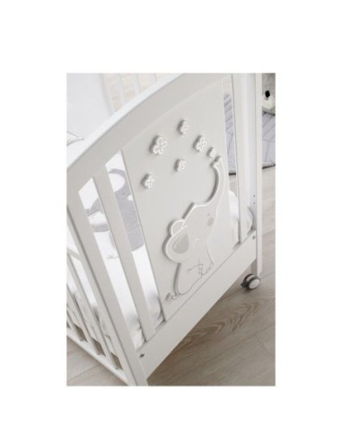 Il lettino della collezione Elly di Erbesi è provvisto di meccanismo di doppia altezza, due sponde mobili, un cassettone, e quattro ruote di cui due con freno.