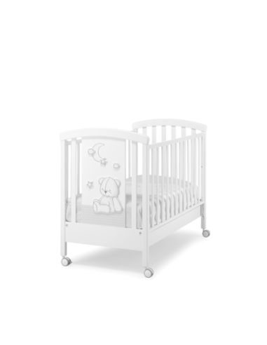 Il lettino Erbesi Stella e un pezzo unico e nuovo della collezione Erbesi. Dotato di originali decorazioni e l'elemento che completa il design della cameretta del piccolo. Realizzato in legno di faggio, con rete ortopedica, spondine regolabili per facilitare la presa del bambino e kit doppia altezza della rete. E' dotato di un ampio cassetto e ruote piroettanti.