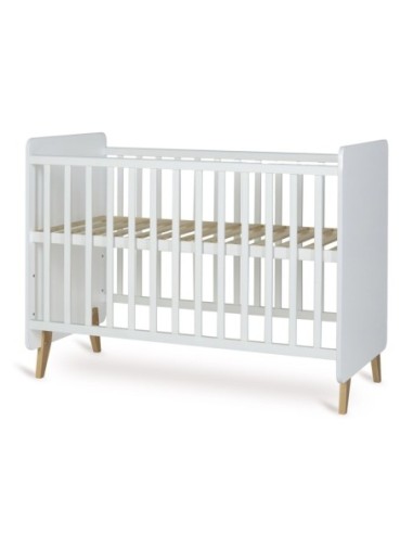 Il lettino è dotato di tre altezze di materasso regolabili (29 cm, 44 cm e 59 cm), per adattarsi facilmente alle esigenze del bambino in crescita. Sostenuto da quattro robuste gambe in legno di faggio massiccio, il lettino trasmette stabilità e durata, mentre i pannelli laterali in truciolato melamminico e legno di faggio massiccio con mandrini aggiungono un'eleganza senza tempo alla cameretta.