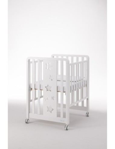 Lettino con base materasso regolabile in altezza su 3 posizioni (dotazione di serie). Doppie sponde mobili, bloccabili e con protezioni anti morso (dotazione di serie). Per facilitare la movimentazione, il lettino ha 4 ruote piroettanti di cui due con freno (dotazione di serie). Completo tessile con colori e ricamo a tema.