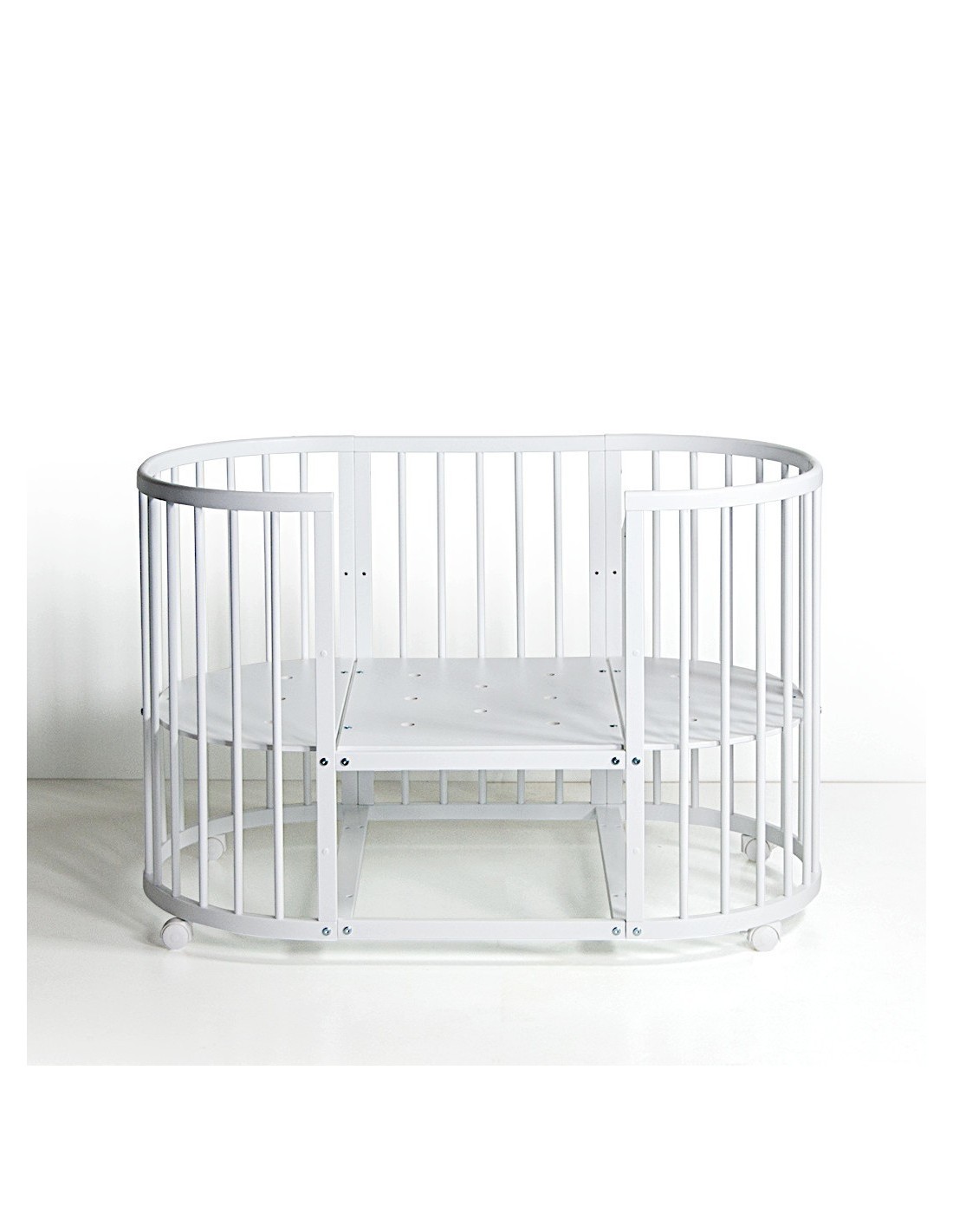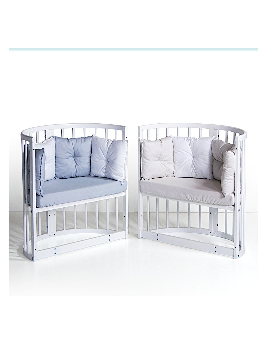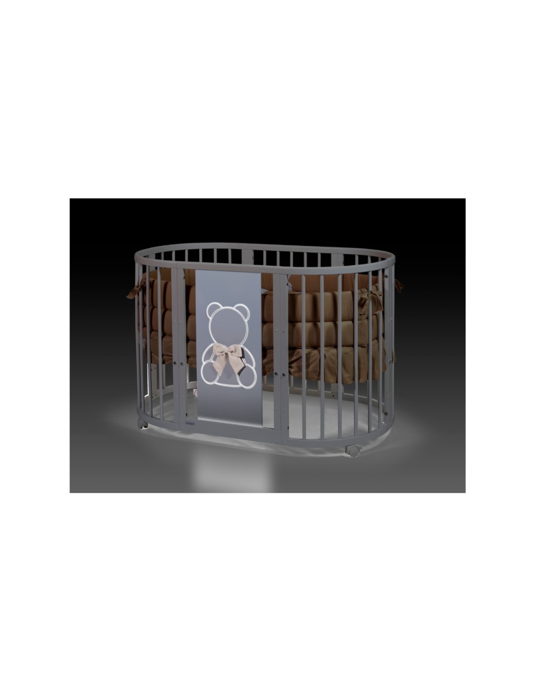 Può essere poi trasformato in lettino ovale, di misura standard, con l’aggiunta di due pannelli laterali in dotazione, di cui uno luminoso. Inoltre, può essere utilizzato come box, lettino montessoriano o comode poltroncine.