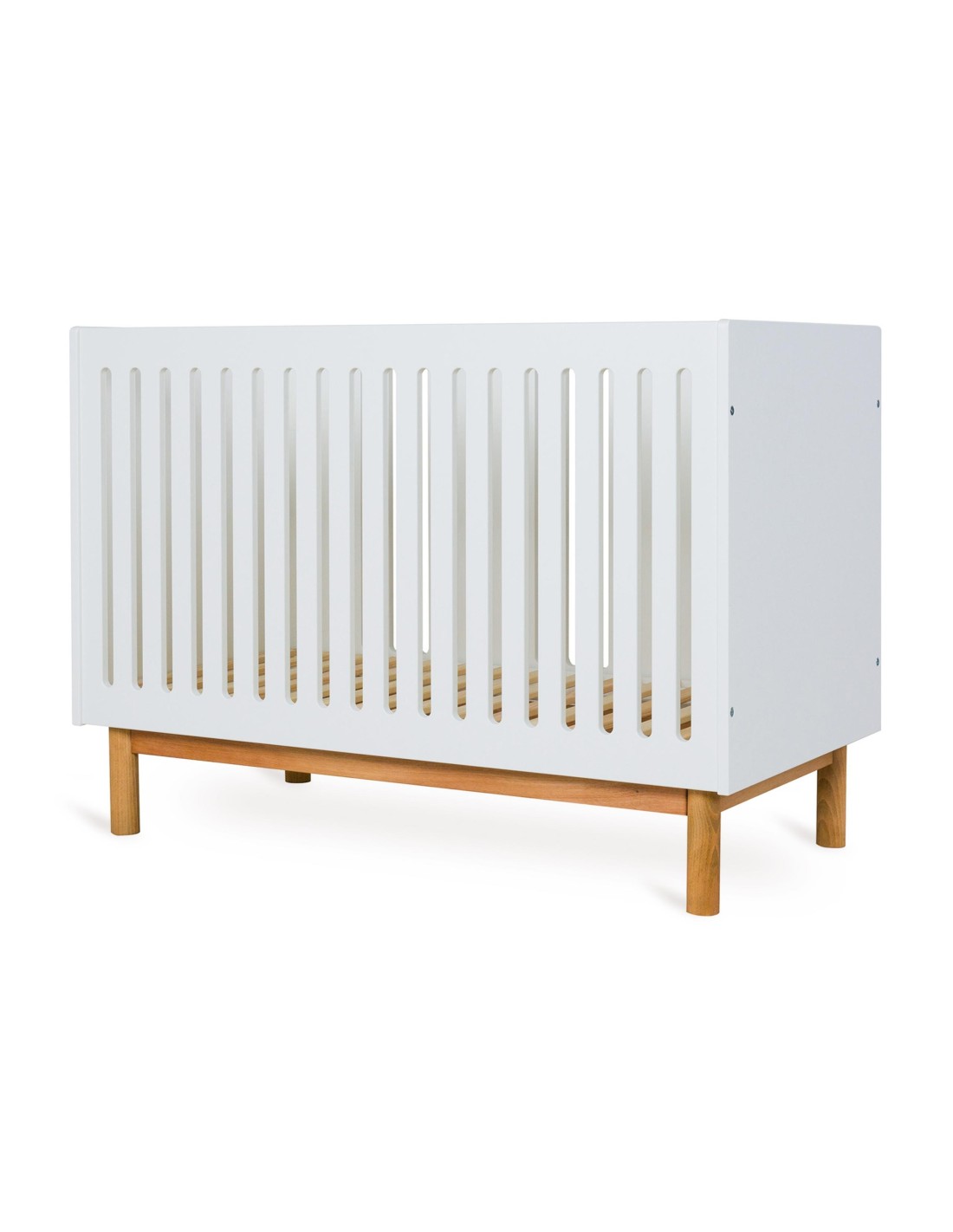 I pannelli della testata e i fianchi con le sbarre sono realizzati in MDF, rifiniti con un primer a base di PUR e una mano di finitura con vernice a base d'acqua, accuratamente testati per soddisfare gli standard EN 71-3 in materia di sicurezza e qualità.
