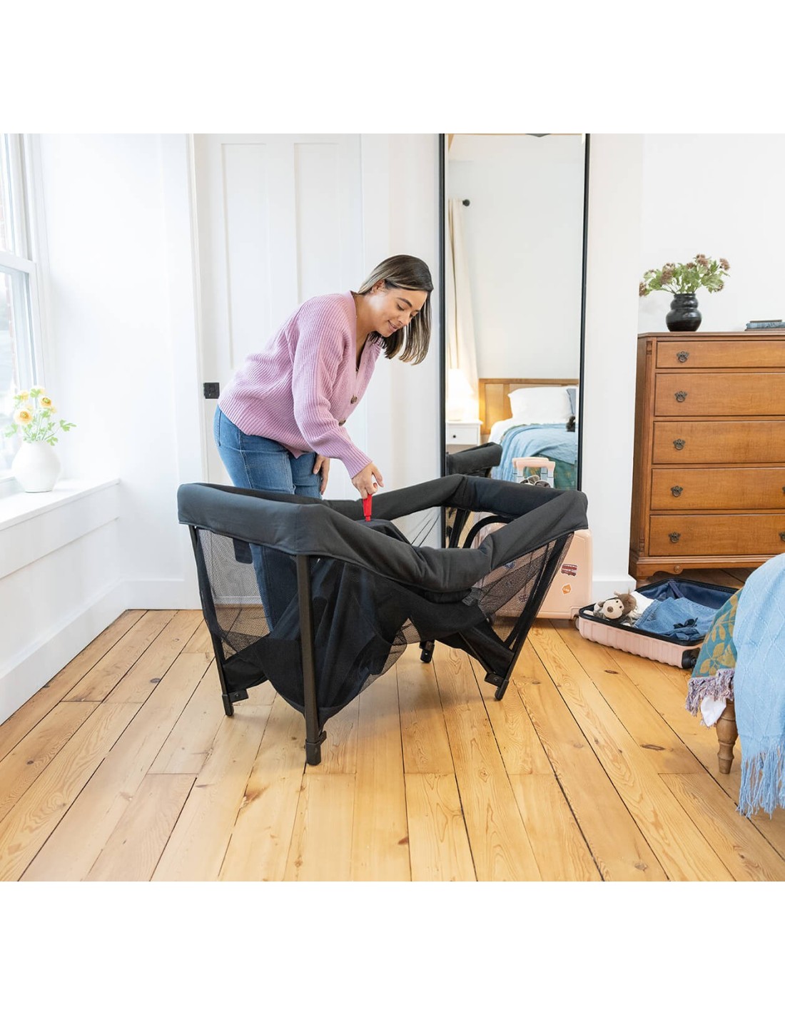 Con un solo gesto, il lettino da viaggio si richiude da culla o lettino in modo compatto, pronto a partire