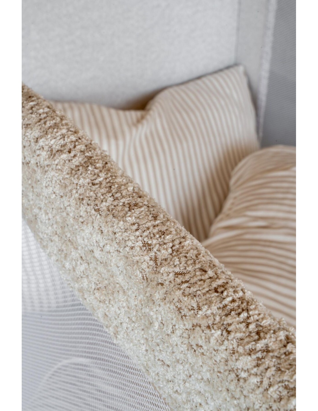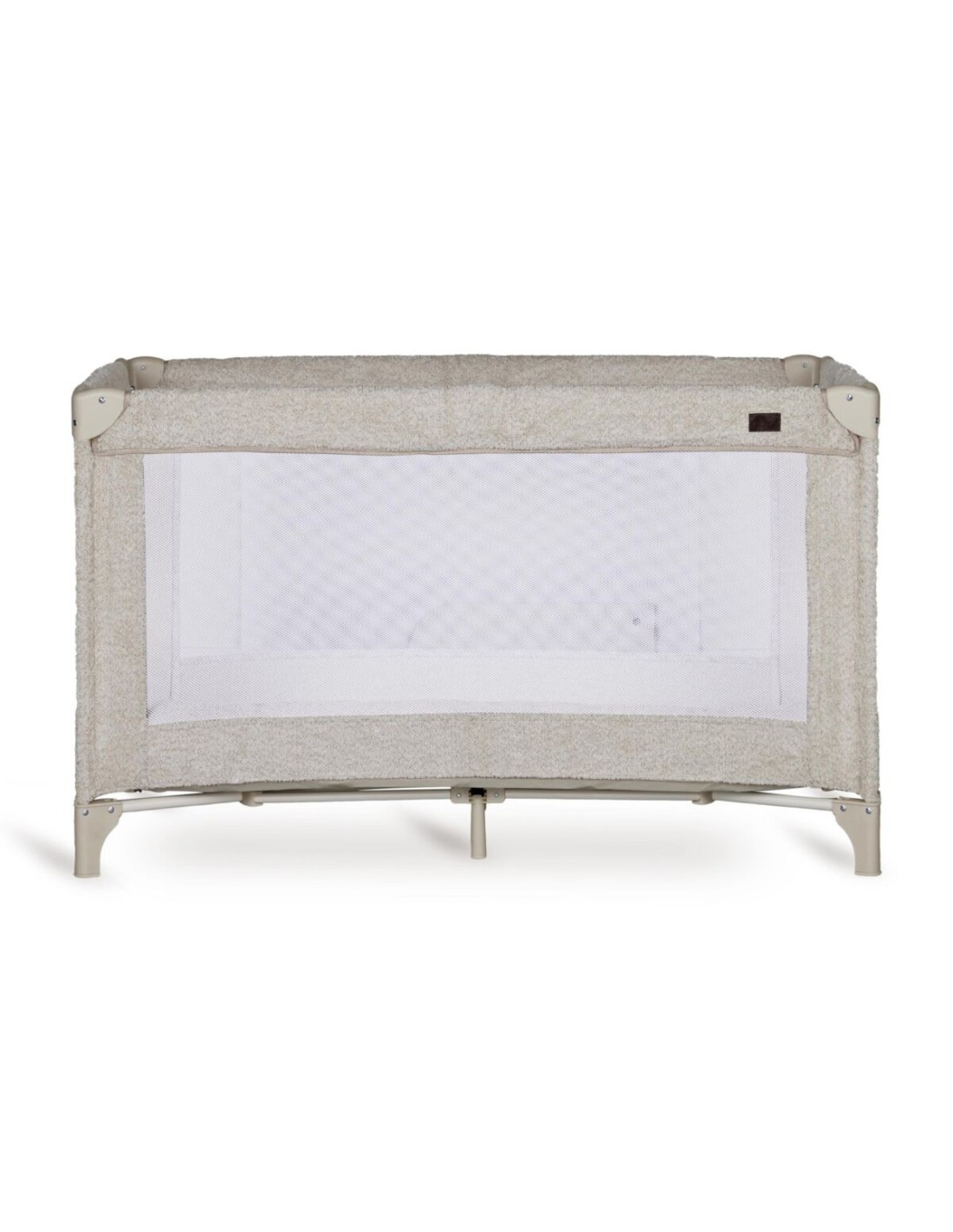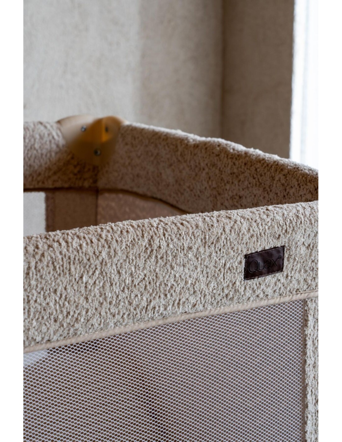 Il lettino è rifinito con un morbido tessuto bouclé, che conferisce un aspetto accogliente e un comfort extra. Questo assicura al tuo bambino un sonno sicuro e alla moda, sia a casa dei nonni, in una casa vacanze o in un affascinante B&B.