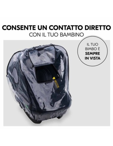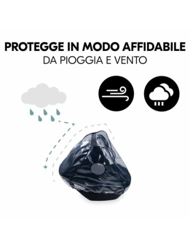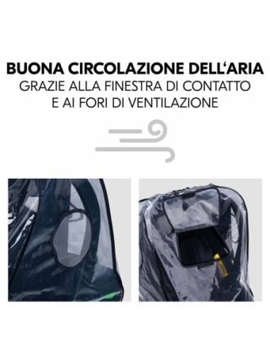 Grazie alla pratica apertura per la maniglia, è possibile trasportare il seggiolino auto con il parapioggia in modo facile e sicuro. Le finestre a rete sui lati garantiscono una buona circolazione dell'aria. La pratica finestra di visualizzazione consente di raggiungere il bambino in modo rapido e semplice senza dover rimuovere l'intera copertura. Se necessario, è possibile fissare la finestra aperta in alto grazie alla chiusura a strappo.