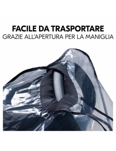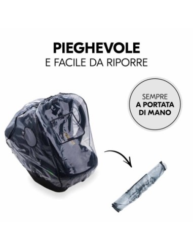 Per riporre la copertura antipioggia, è sufficiente ripiegarla su se stessa. Si inserisce nel cestino della spesa, nella borsa o nell'organizer della carrozzina. Quando il tempo cambia, avrai sempre la tua copertura a portata di mano. Il parapioggia è compatibile con la maggior parte degli ovetti, come ad esempio il Drive N Care di Hauck
