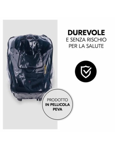 Grazie all'elastico circolare, il parapioggia si adatta perfettamente al seggiolino auto, è sempre ben saldo e il bambino rimane sempre asciutto. La copertura antipioggia è realizzata in pellicola PEVA, innocua per la salute. È robusta e durevole.