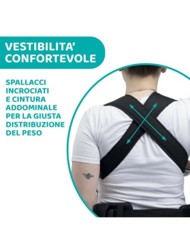 Garantisce la corretta postura a M delle gambe e la postura a C della schiena.