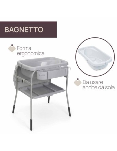 Massimo comfort per il bambino grazie al morbido riduttore per il cambio e alla vaschetta ergonomica.