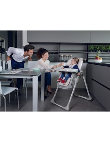Il seggiolone chiudibile Meeting di Foppapedretti ha seduta regolabile in altezza e schienale regolabile in multiposizioni.