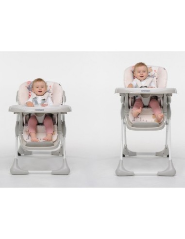 Disponibile in diverse colorazioni e fantasie, ha imbracatura a 5 punti, vassoio regolabile in 3 posizioni e vassoietto addizionale removibile per una facile pulizia.