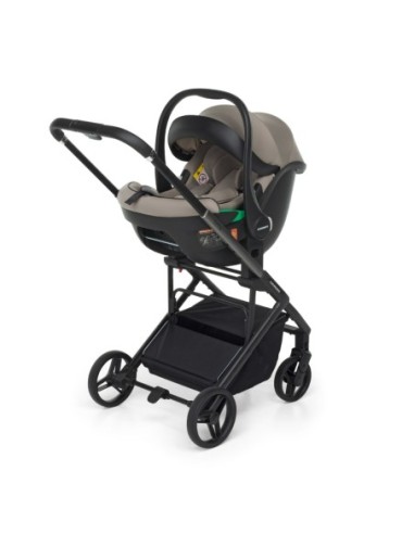 Sul leggero telaio in alluminio Self Standing con dettagli cromati possono essere montati la navicella spaziosa, interno sfoderabile e pieghevole per chiusura compatta, poi la seduta passeggino reversibile e chiudibile fronte strada e fronte mamma con schienale areato, utilizzabile fin dalla nascita, e il seggiolino auto i-Size per i primi mesi (per bambini da 40 a 87 cm di altezza, max 13 kg).