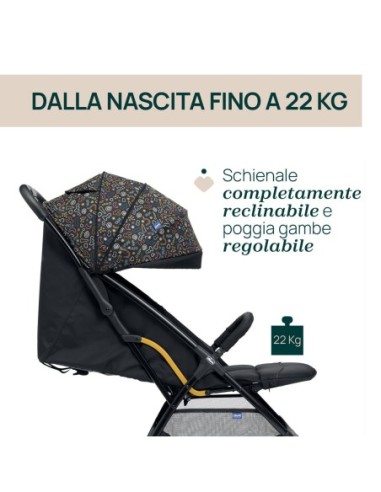 Glee dispone dell'omologazione dalla nascita fino a 22 kg grazie allo schienale completamente reclinabile e al poggiapiedi regolabile.