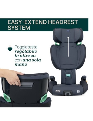 Sistema poggiatesta estensibile che si adatta perfettamente alla crescita del bambino.