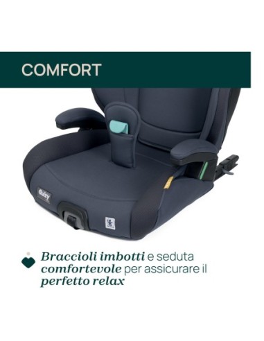Installazione flessibile grazie alla possibilità di montare il seggiolino con i connettori Isofix come stabilizzatori e la cintura a tre punti del veicolo o semplicemente con la cintura a tre punti del veicolo.