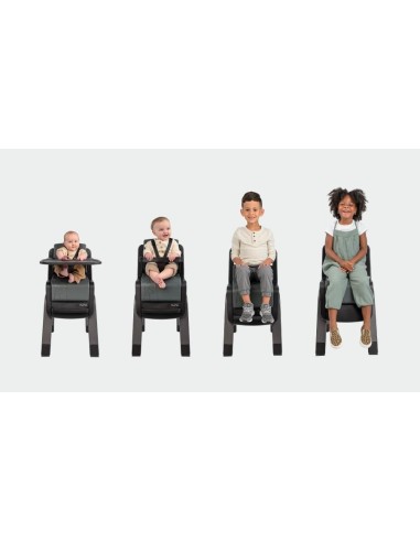 • Un meccanismo di sollevamento nascosto permette di regolare con facilità l'altezza, consentendo al bambino di stare a tavola insieme agli altri
