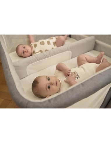 Questa culla unica nel suo genere permette ai gemelli di dormire fianco a fianco, mantenendo ciascuno il proprio spazio individuale, conforme alle più rigorose norme di sicurezza per la nanna.