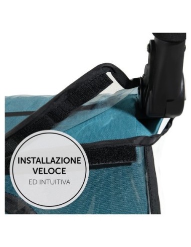 Poco importa se in modo rimorchio o passeggino – la copertura antipioggia con chiusura a strappo rimane sempre fissata in modo affidabile, tenendo l’interno della cabina e i tuoi bimbi all’asciutto.