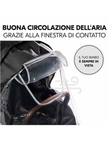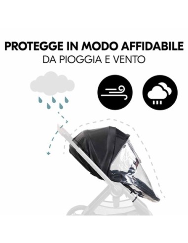 Un'ulteriore chiusura a strappo fissa il parapioggia ai lati e il bimbo rimane sempre asciutto. La copertura, robusta e durevole, è realizzata in pellicola PEVA, innocua per la salute.