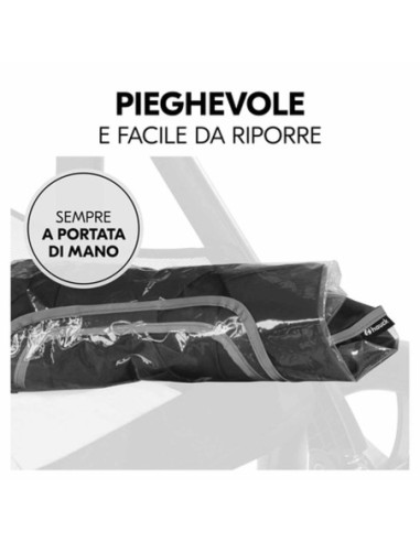 Grazie alla parte aggiuntiva in tessuto, è possibile ripiegare facilmente il parapioggia in dimensioni ridotte per riporlo. Si inserisce nel cestino della spesa, nella borsa o nell'organizer della carrozzina. Se il tempo cambia, avrai sempre a portata di mano la copertuta. Il parapioggia è compatibile con la maggior parte dei passeggini, ad esempio con quelli hauck Rapid 4D, Move so Simply, Walk N Care, Vision X o Uptown.