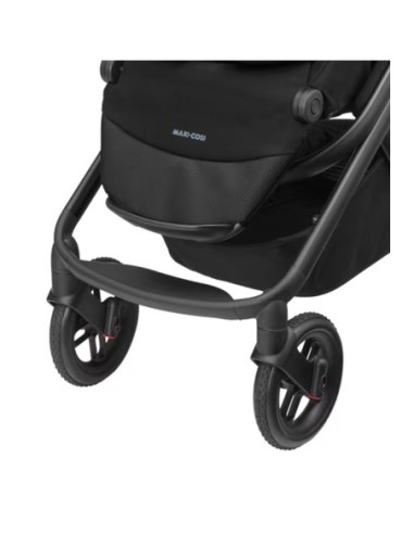 Le ruote del passeggino per tutti i terreni, le morbide sospensioni anteriori e posteriori e il facile sistema di trazione anteriore modulare consentono di manovrare facilmente qualsiasi superficie.