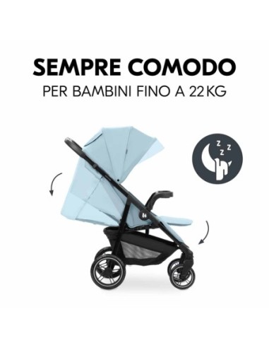 Attivi o stanchi: l'importante è la comoditài! Seduto o sdraiato, il passeggino ha sempre la posizione giusta per i bambini fino a 22 kg. Perché lo schienale e i piedini sono facilmente regolati
