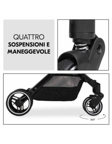 Con sospensione e ruote di facile corsa, il tuo bambino viaggia sempre al sicuro. Superi ogni sterzata o curva con facilità grazie alle ruote avanti piroettanti su 360 gradi.