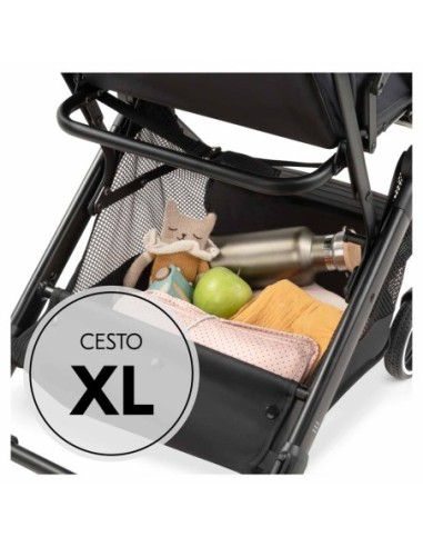Nel grande cesto del passeggino maneggevole hai tutto l’importante a portata di mano.