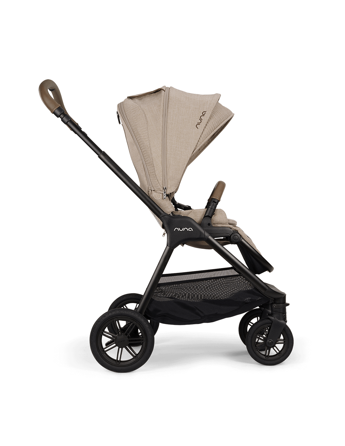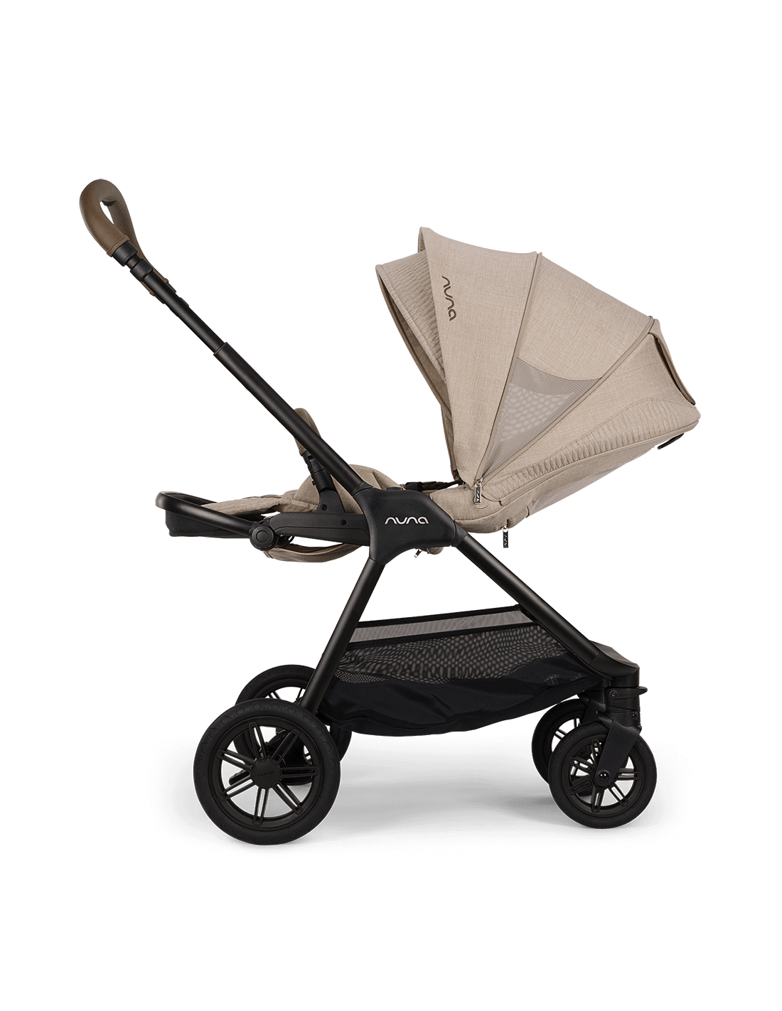 - Il maniglione di spinta e il maniglione di sicurezza in elegante ecopelle conferiscono stile alle passeggiate