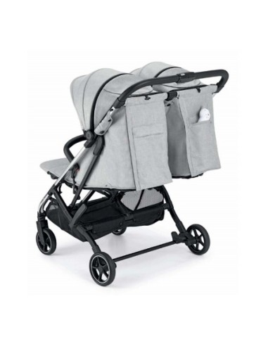 Questo passeggino doppio, omologato fino ai 4 anni e con un peso di 12 kg, offre comodità, sicurezza e praticità, grazie al suo telaio in alluminio leggero e compatto.