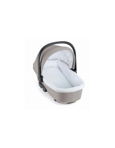 Questo trio comprende il seggiolino Area Zero+ omologato secondo la normativa R-129 I-Size, utilizzabile da 40 a 75 cm, con schienale fisso.