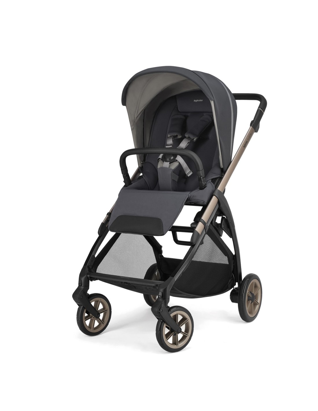 Grazie all’esclusivo sistema brevettato da Inglesina, il telaio si apre e chiude con una sola mano e sta in piedi da solo quando chiuso senza che il maniglione tocchi mai terra.