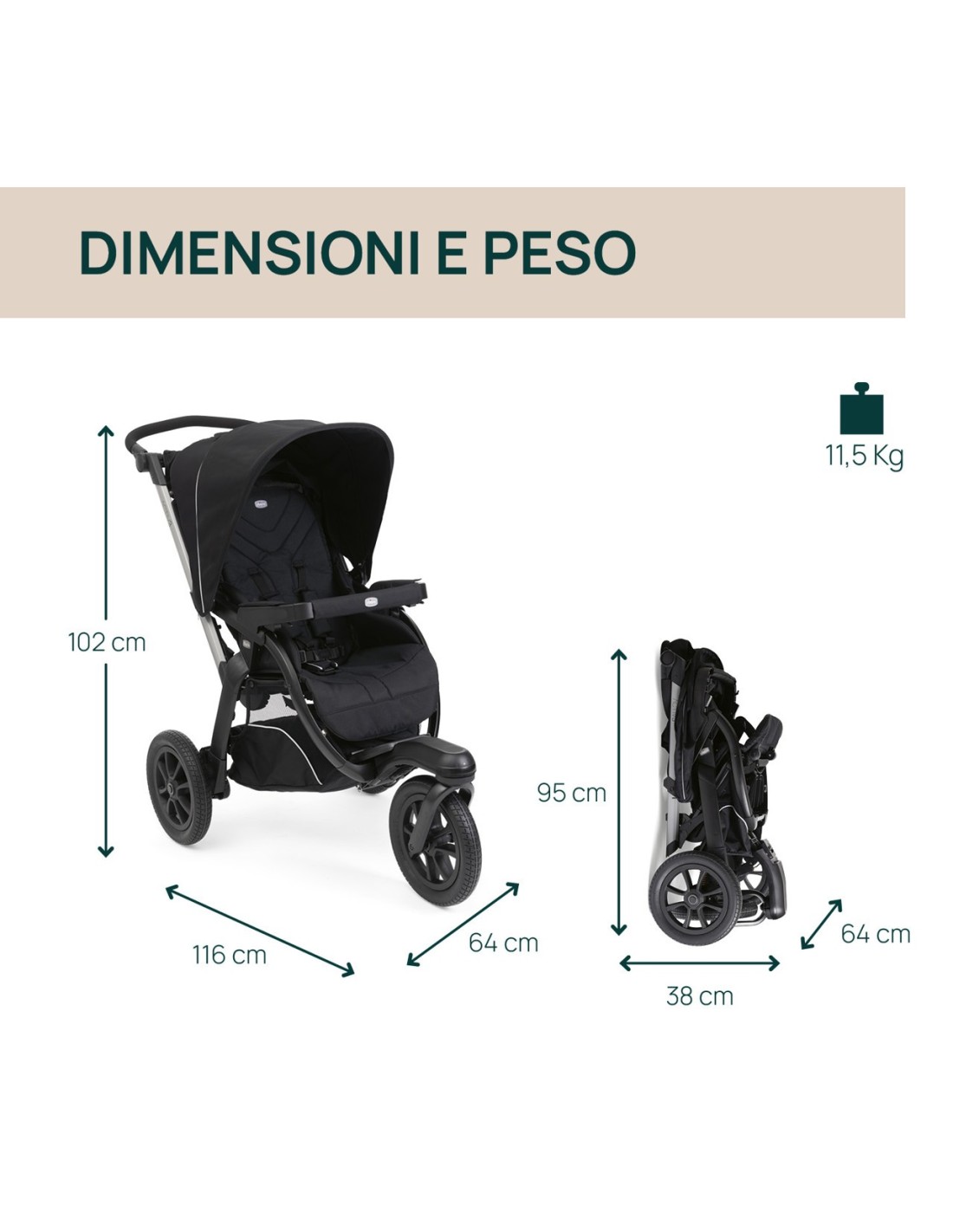 Linee essenziali e design sportivo con dettagli accattivanti che incontrano i gusti dei giovani genitori amanti delle attività all'aria aperta.