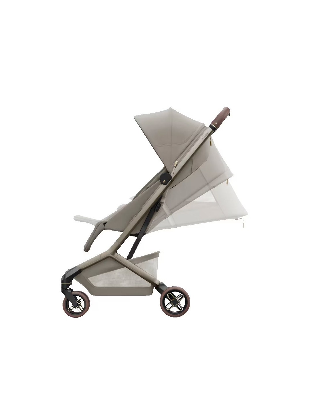 La capottina parasole estensibile è dotata di finestra di ventilazione trasparente che assicura protezione e traspirabilità, anche nelle località più calde.