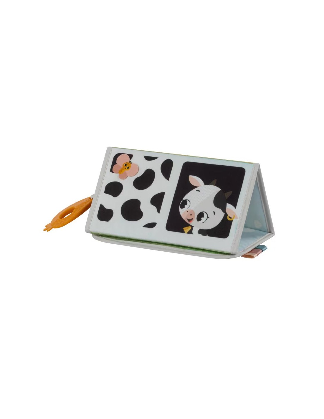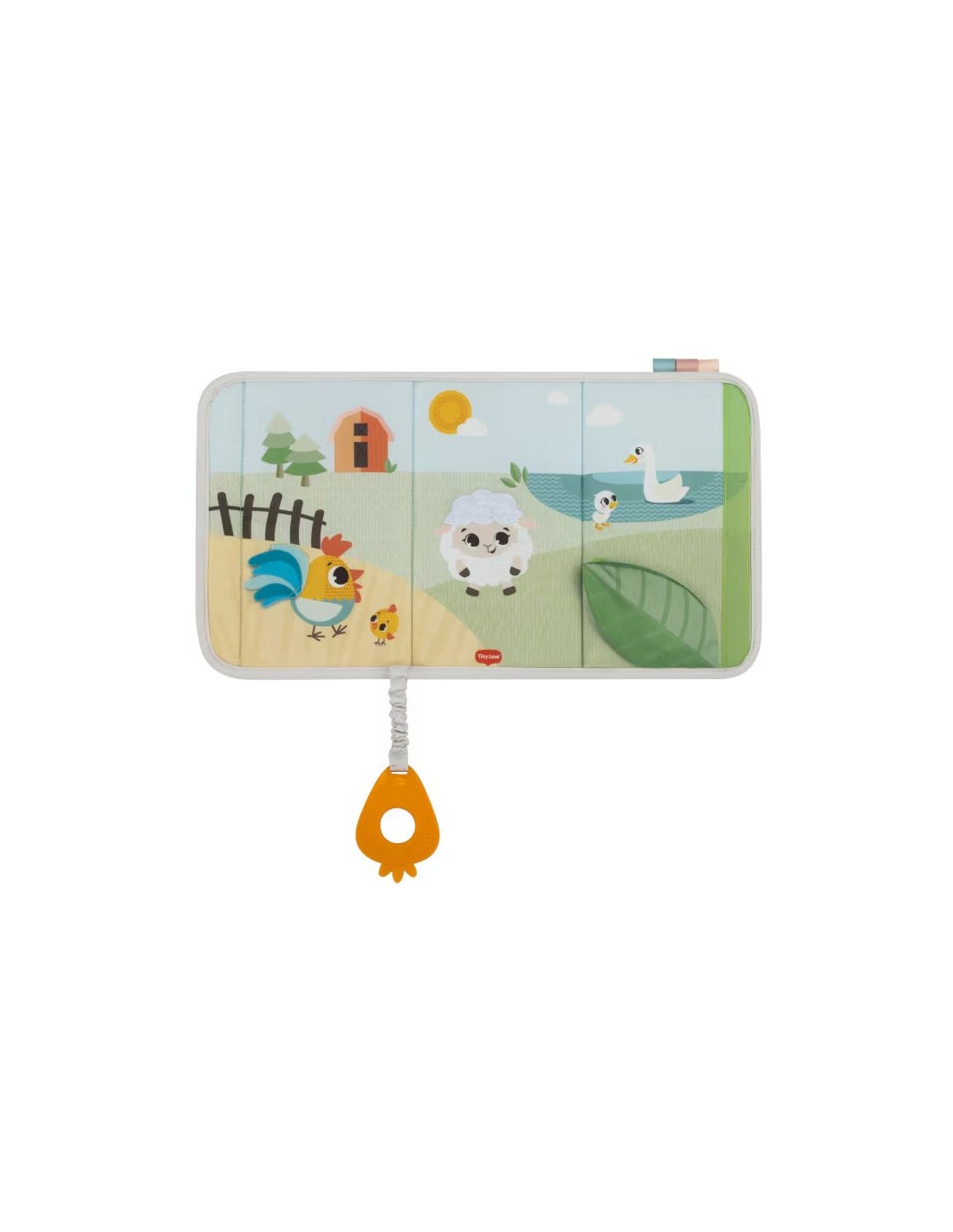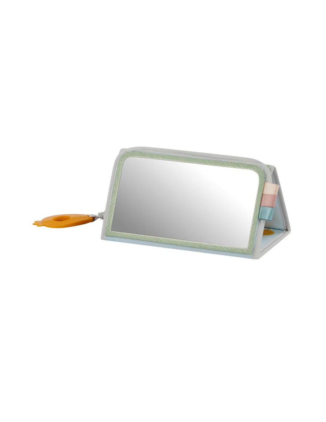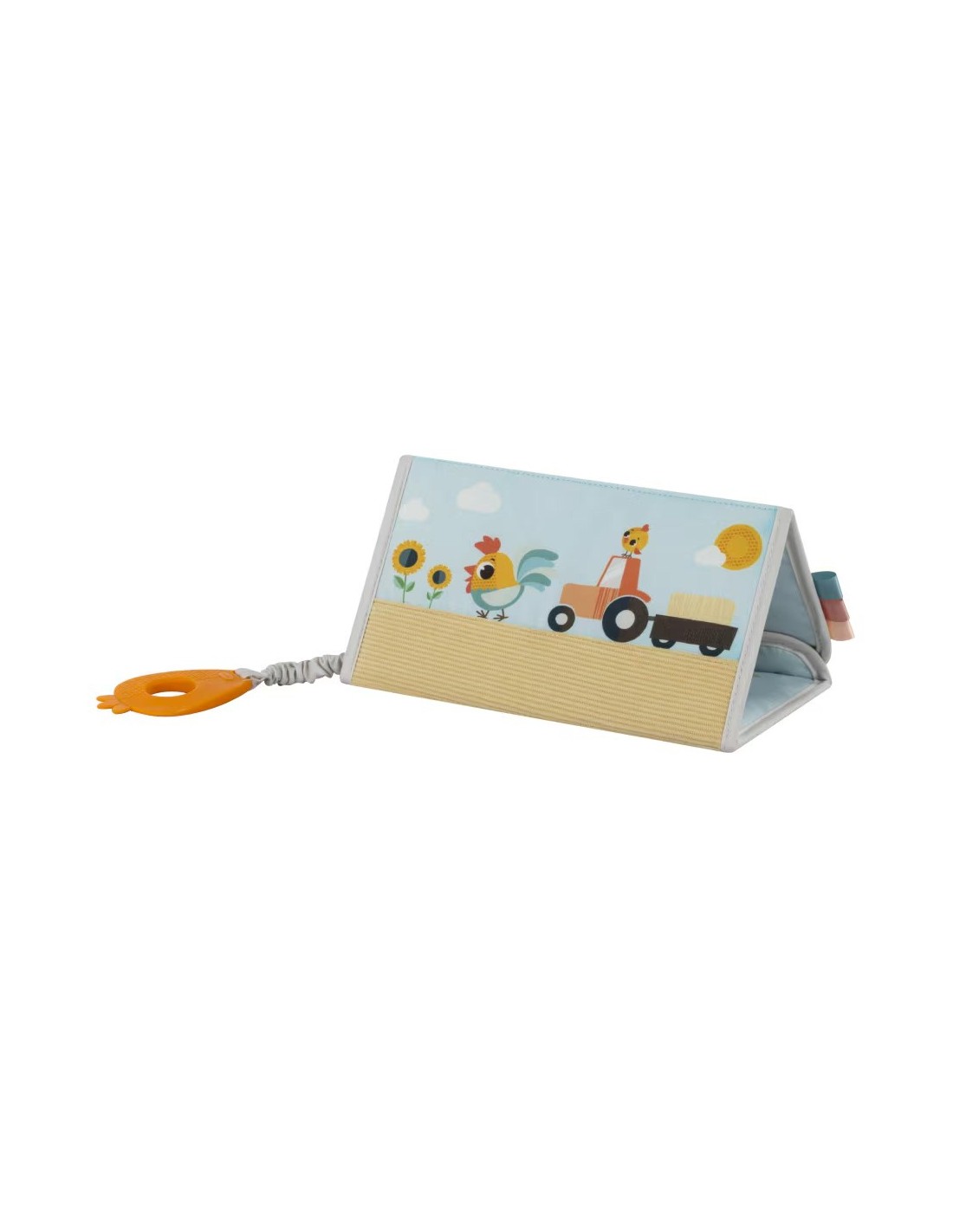 Diverse consistenze, un anello da dentizione e uno specchio invitano le manine e gli occhi dei bambini a esplorare, stimolando i sensi e favorendo lo sviluppo attraverso l'esplorazione.