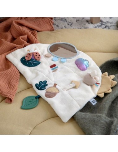 Morbido pannello di attività ricco di dettagli per stimolare le capacità motorie e la curiosità del bambino.
