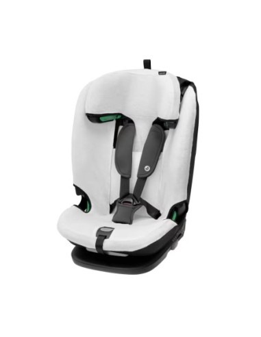 Il tessuto traspirante in cotone organico assorbe l'umidità più rapidamente e fornisce uno strato aggiuntivo di comfort. Per comodità, mantiene il seggiolino auto protetto da versamenti e sporco ed è lavabile in lavatrice fino a 30°C. Progettato per adattarsi facilmente senza rimuovere le cinture.